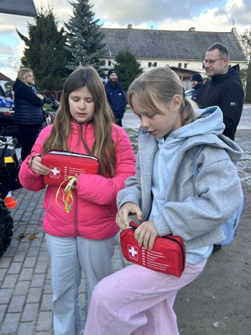 Uczestnikom przekazano apteczki, zestawy przetrwania, koce termiczne, Poradnik Bezpieczeństwa i ulotki RCB, co podniosło poziom przygotowania każdego gospodarstwa domowego.